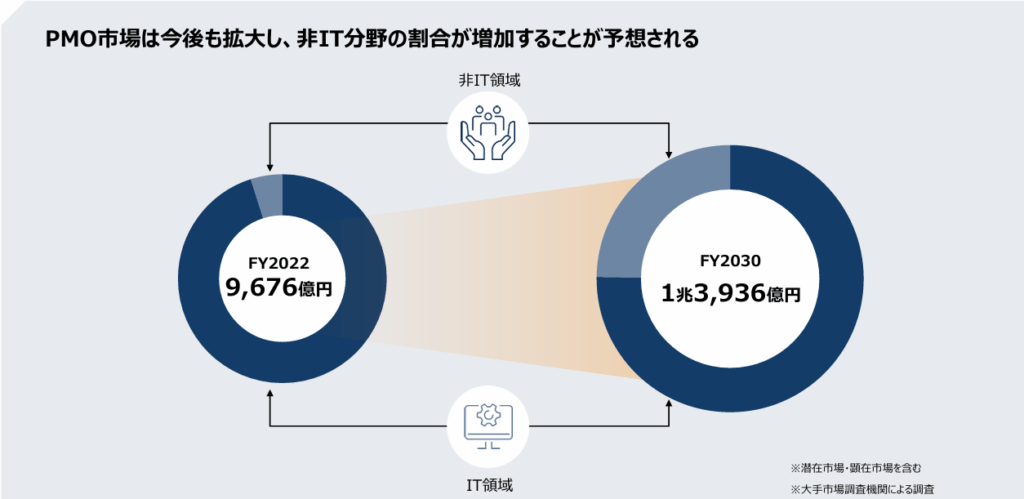 PMO単体ではなく、PM支援・リソース調達(体制構築)まで含めて提供する設計の会社では、PMOが意思決定PMO〜PM支援へ寄りやすい傾向があります。